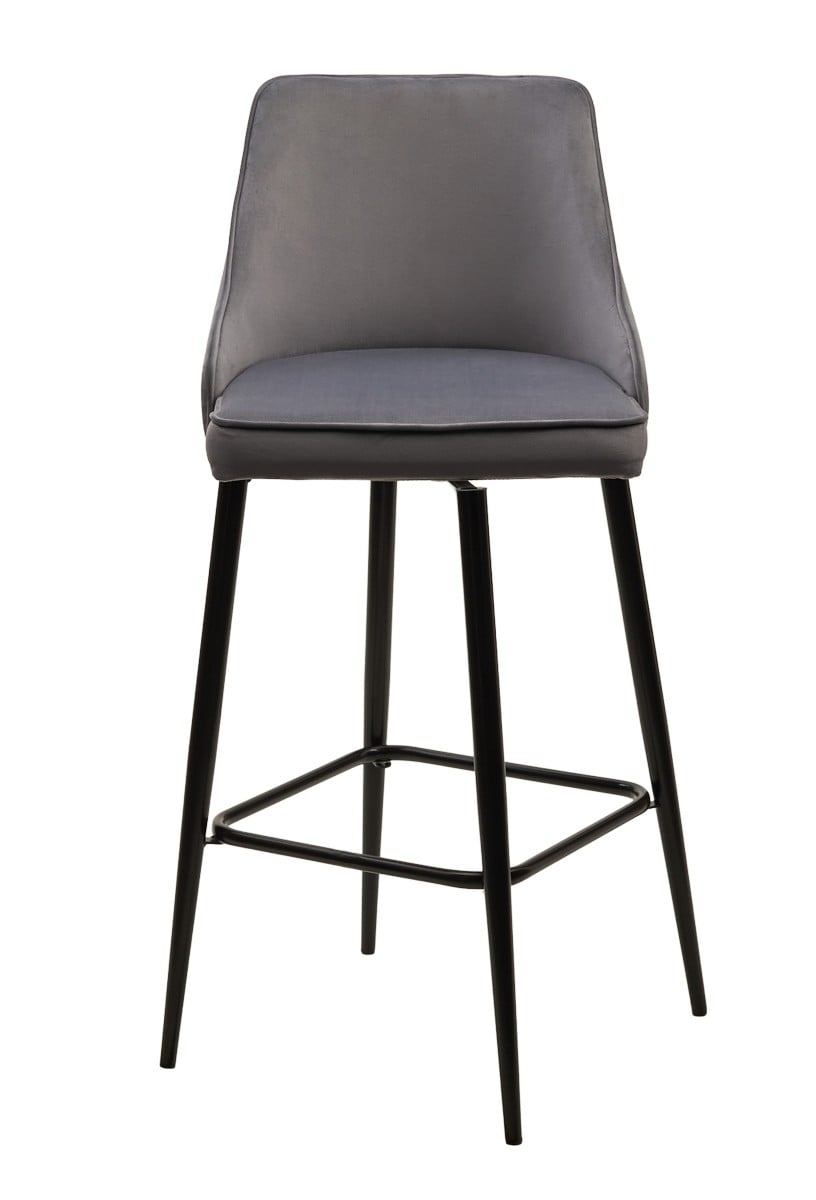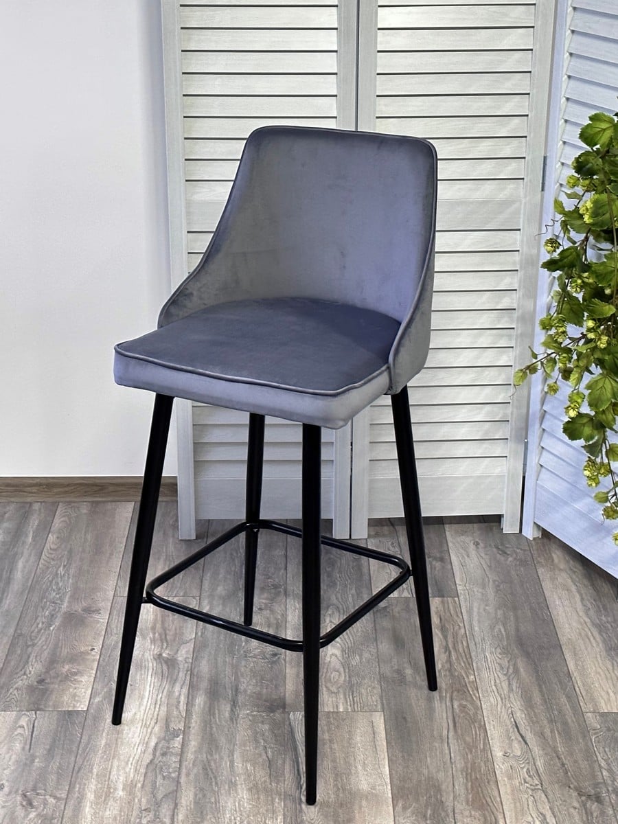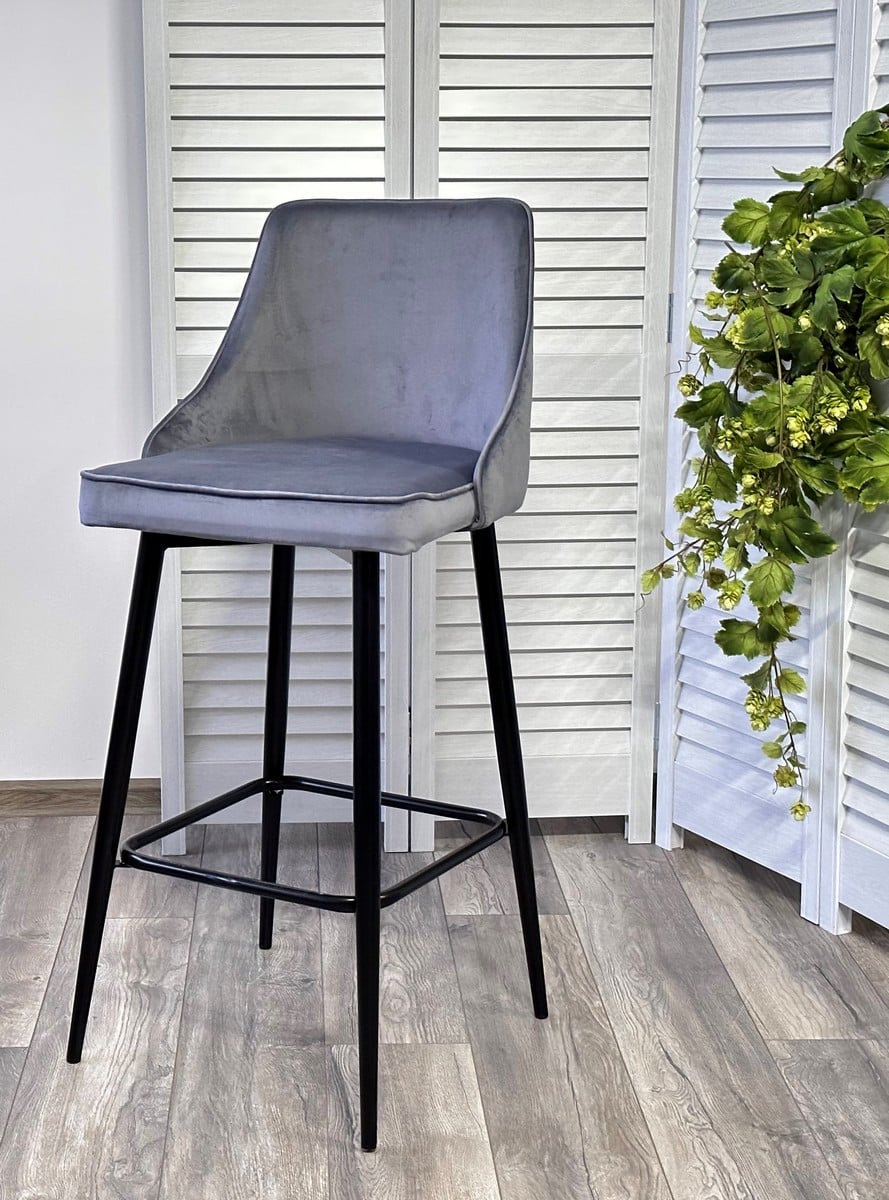 Барный стул Паркер H-14 серый, велюр / чёрный каркас, поворот на 360 градусов