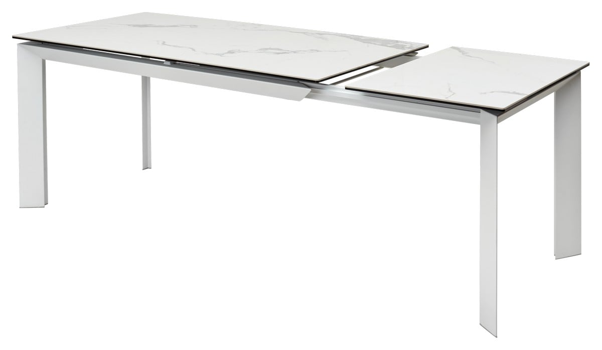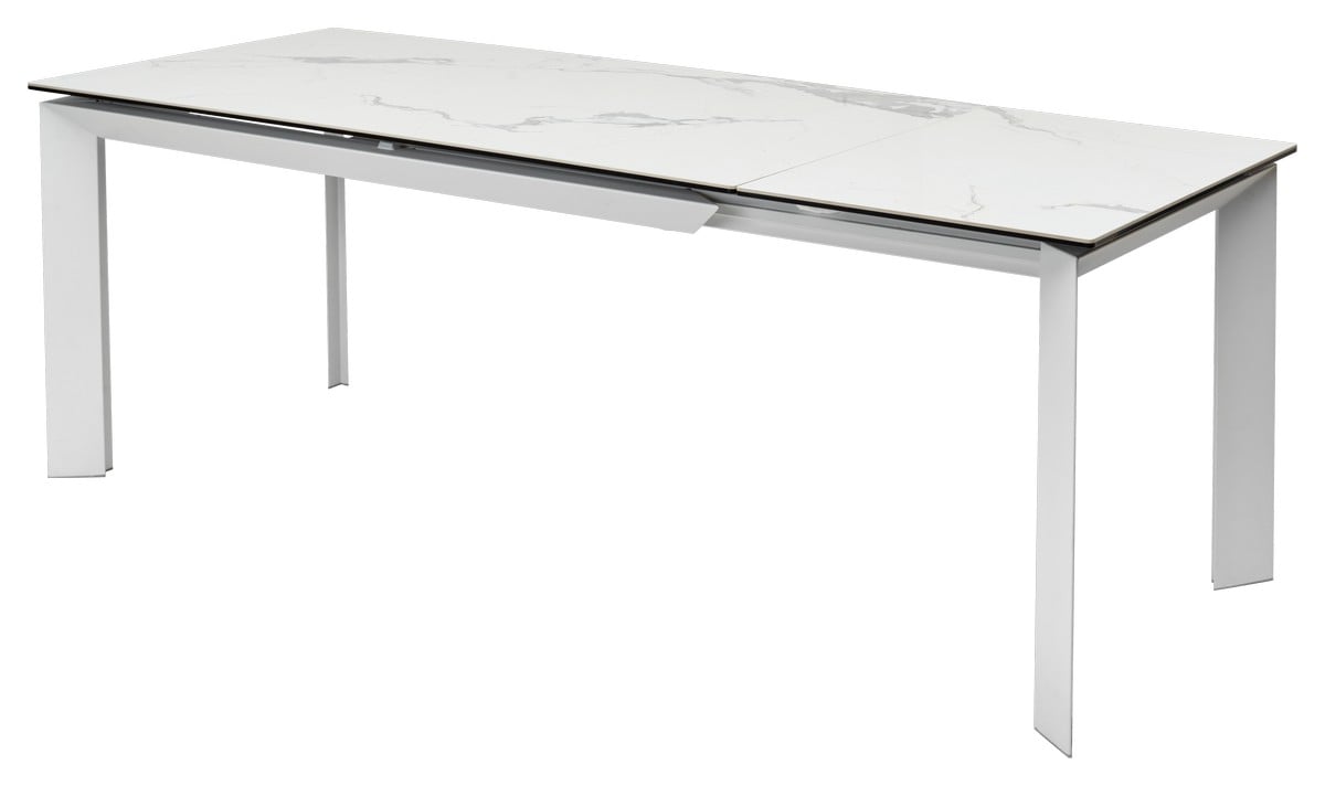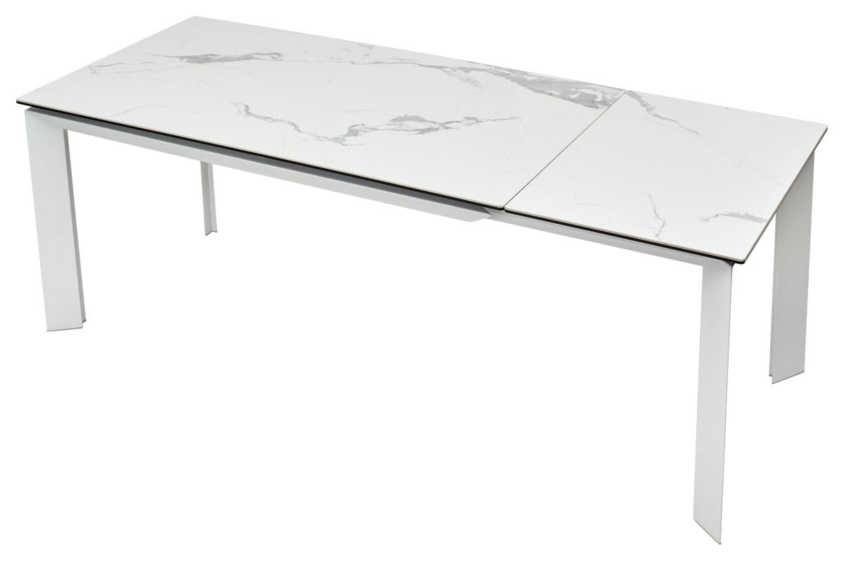 Стол Cremona 140 глянцевый статуарный белый мрамор, керамика / белый каркас