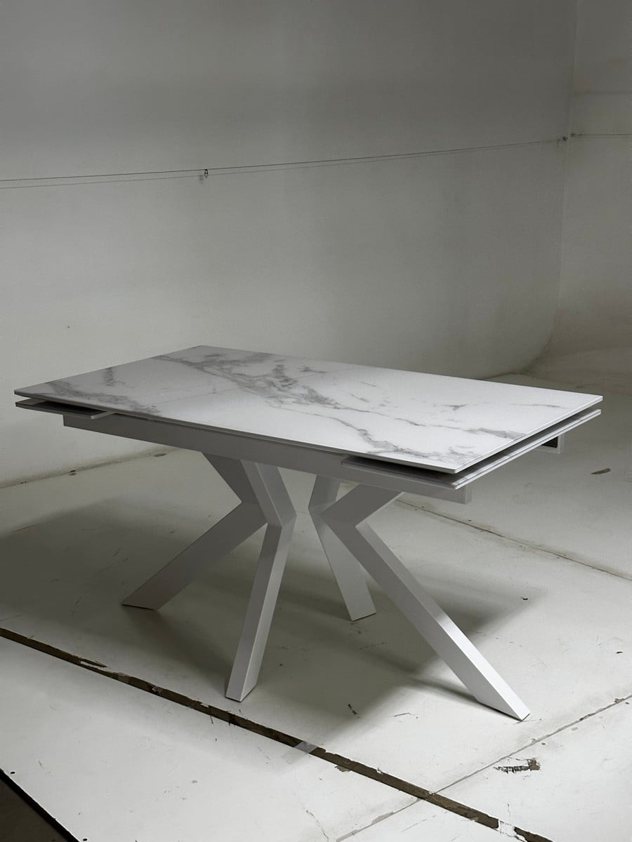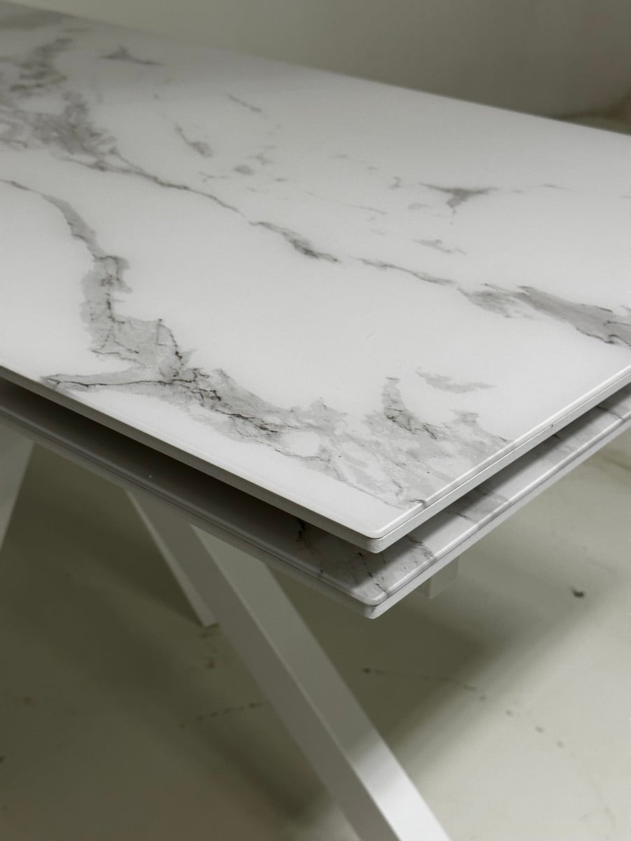 Стол Кентукки 3 140 белый мрамор, стекло / белый