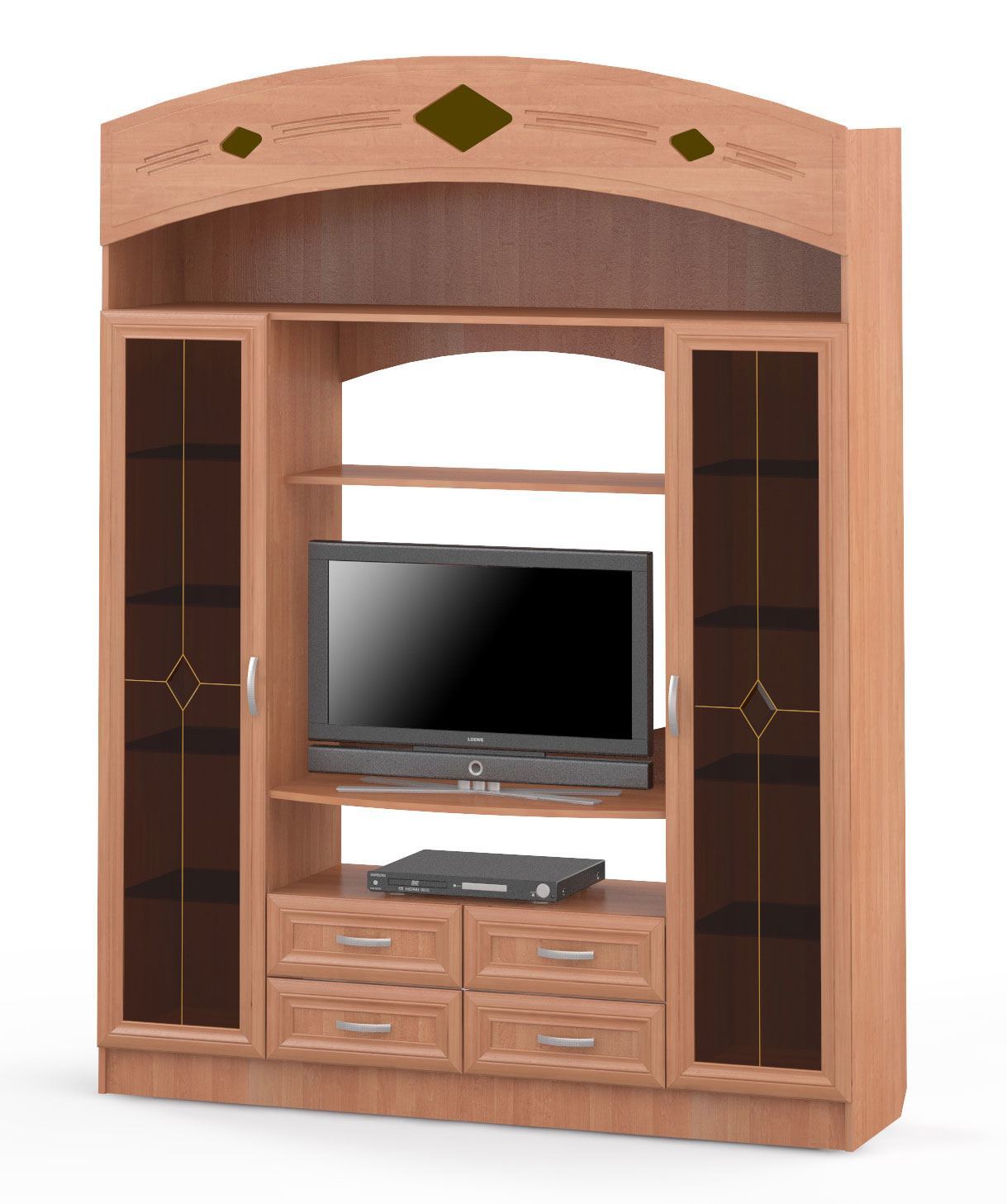 Технологии развивались: появились видеомагнитофоны, затем DVD-проигрыватели, подтянулись игровые приставки, да и сами телевизоры стали плоскими. Всё это повлекло за собой изменение дизайна мебели – согласитесь, где-то же надо было расположить всю эту «электронщину».