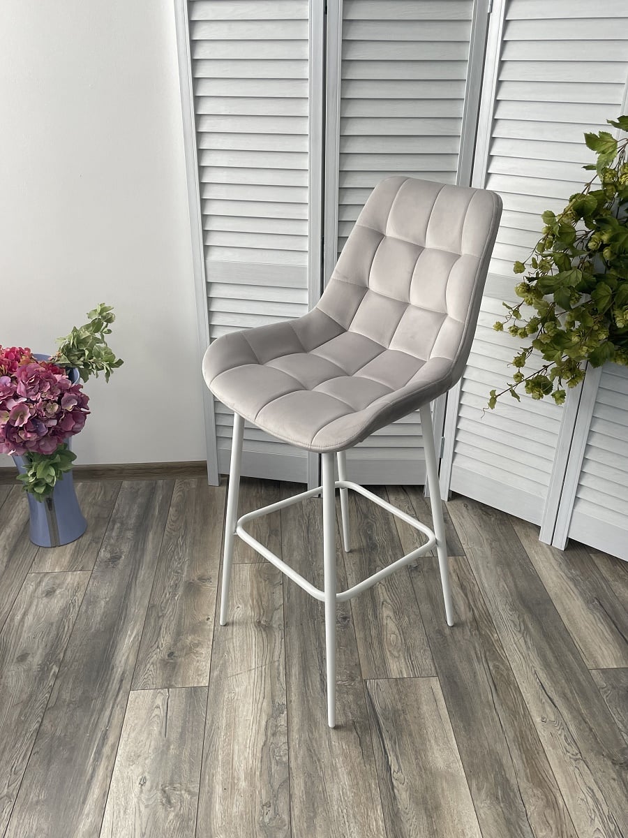 Барный стул Хофман, цвет H-09 светло-серый, велюр / белый каркас