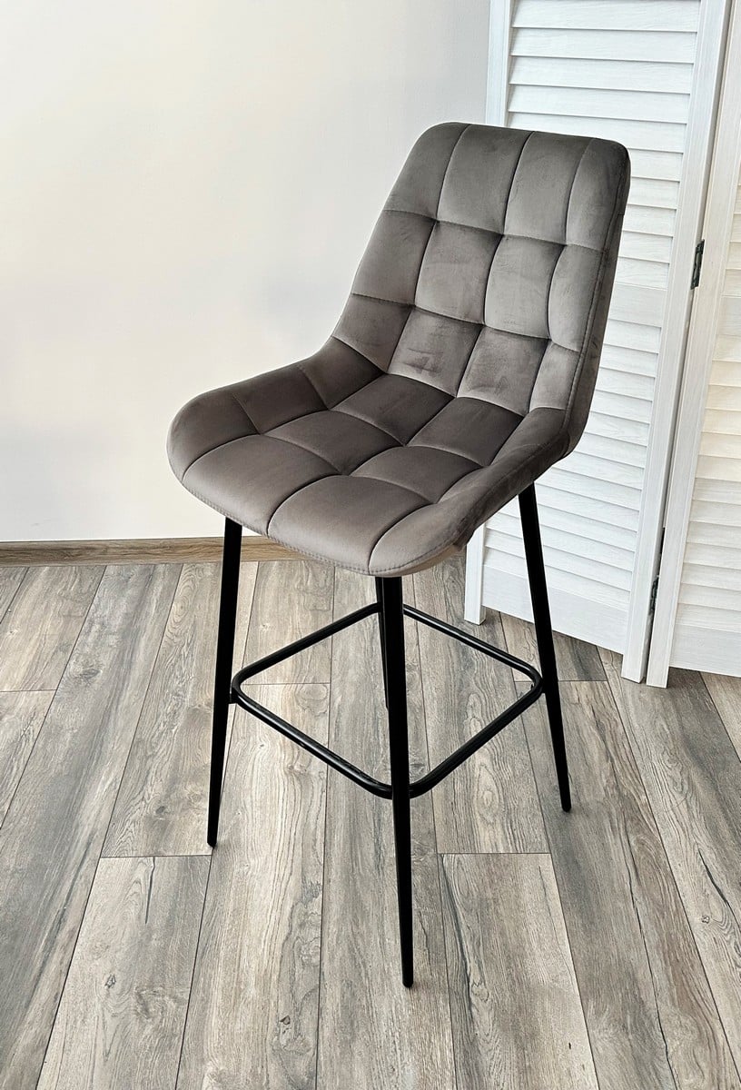 Барный стул Хофман, цвет H-18 графитовый, велюр / чёрный каркас