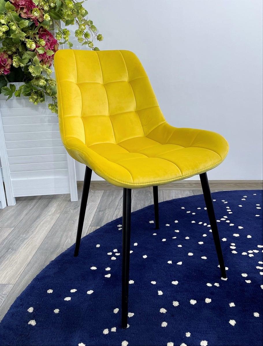 Стул Хофман цвет H-19 Жёлтый велюр / чёрный каркас