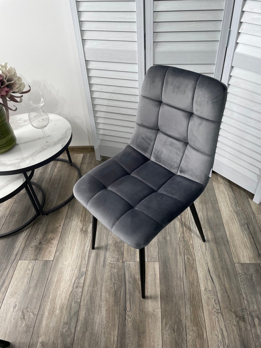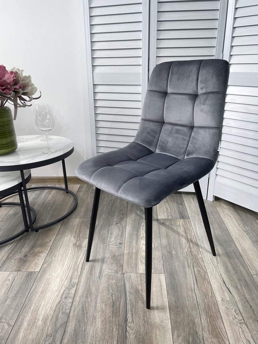 Стул Зефир Teddy 024 серый, велюр / чёрный каркас