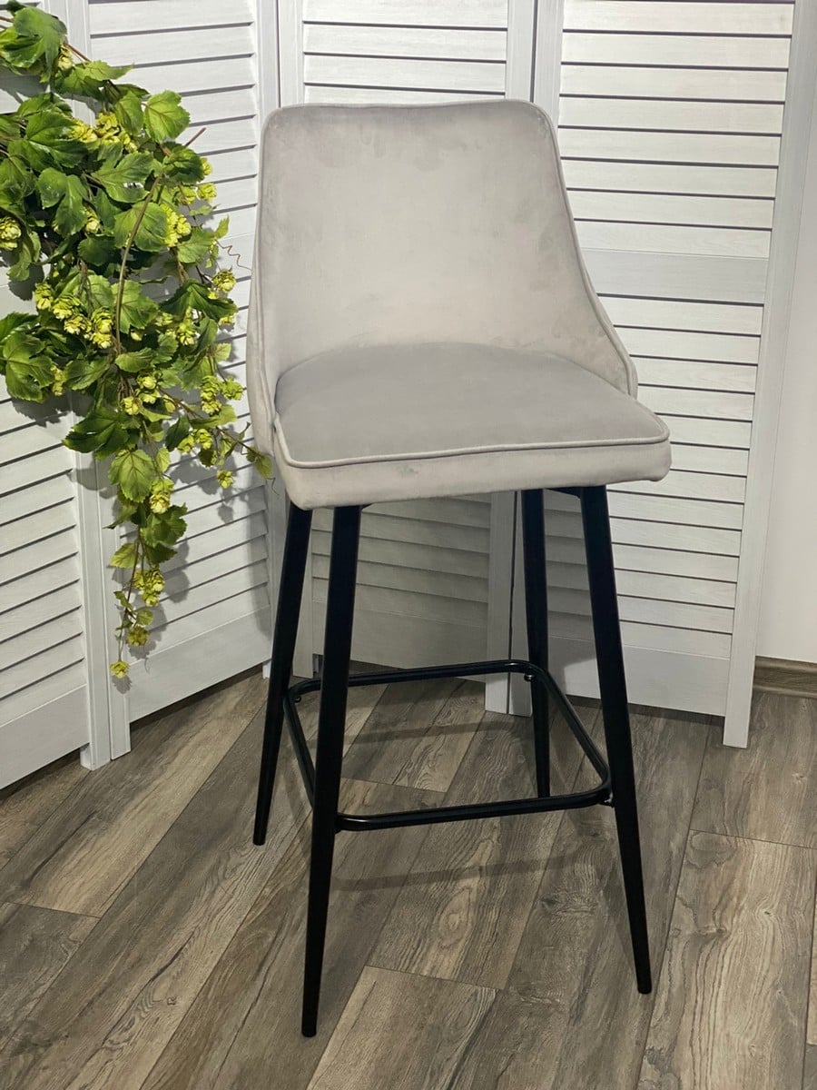 Барный стул Паркер H-09 светло-серый, велюр / чёрный каркас, поворот на 360 градусов