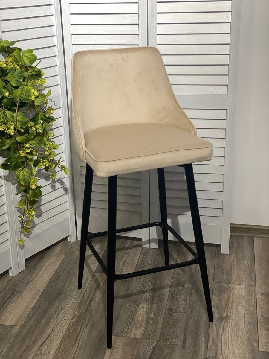 Полубарный стул Паркер H-06 бежевый, велюр / чёрный каркас, поворот на 360 градусов