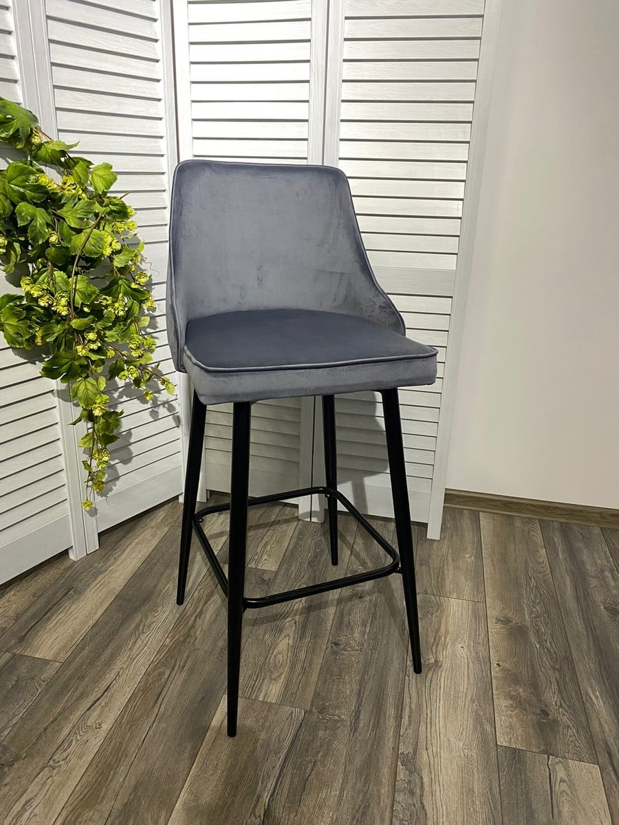 Барный стул Паркер H-14 серый, велюр / чёрный каркас, поворот на 360 градусов