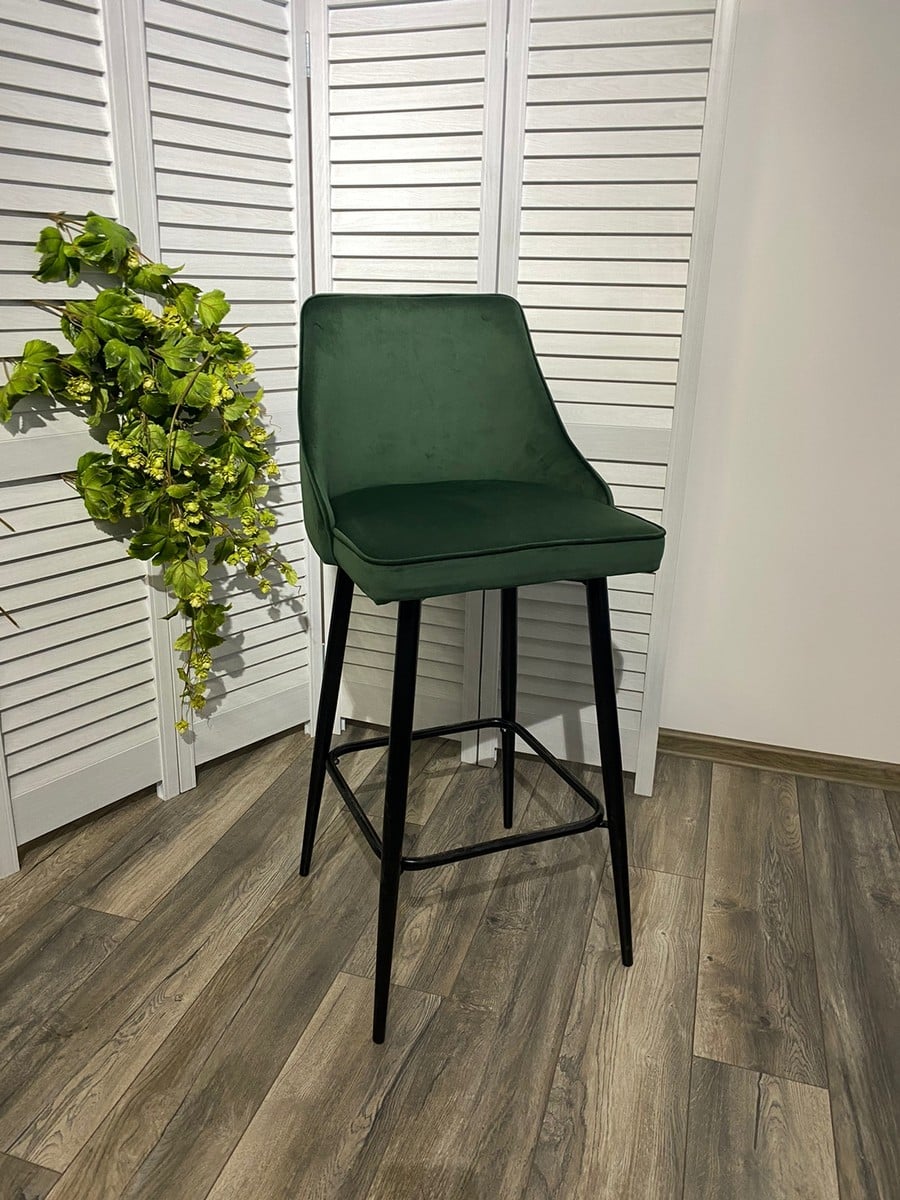 Барный стул Паркер H-30 изумрудный, велюр / чёрный каркас, поворот на 360 градусов