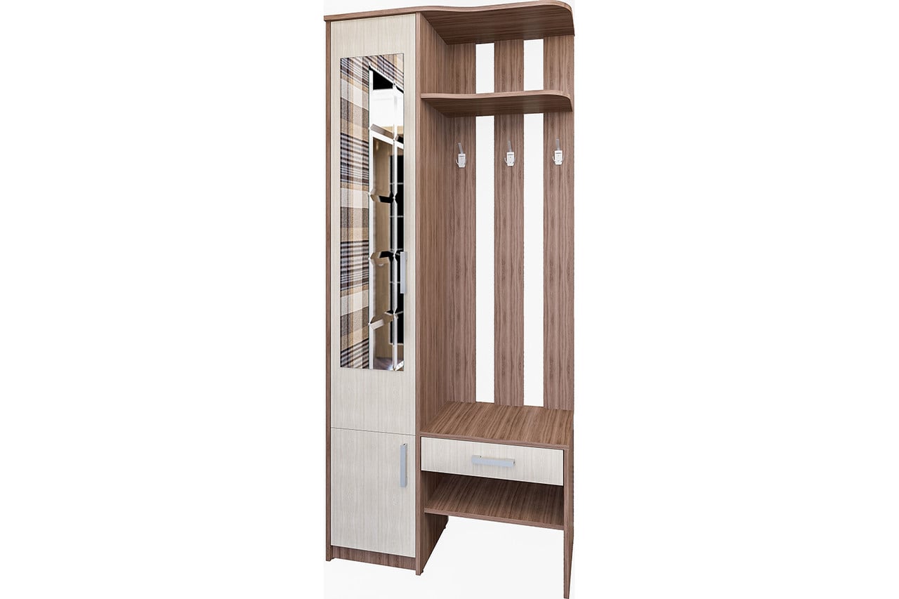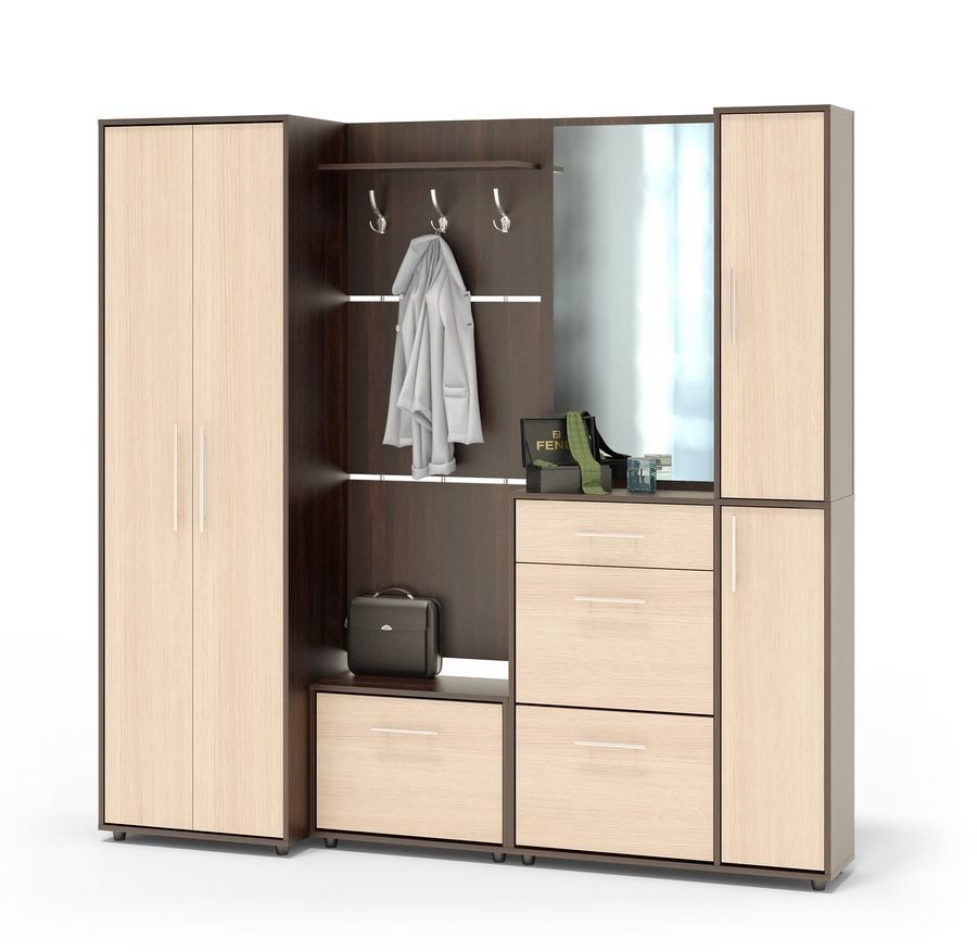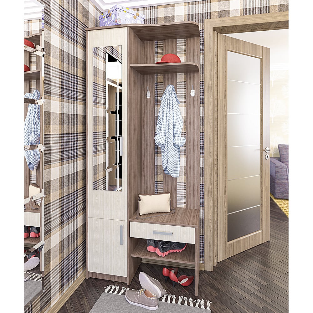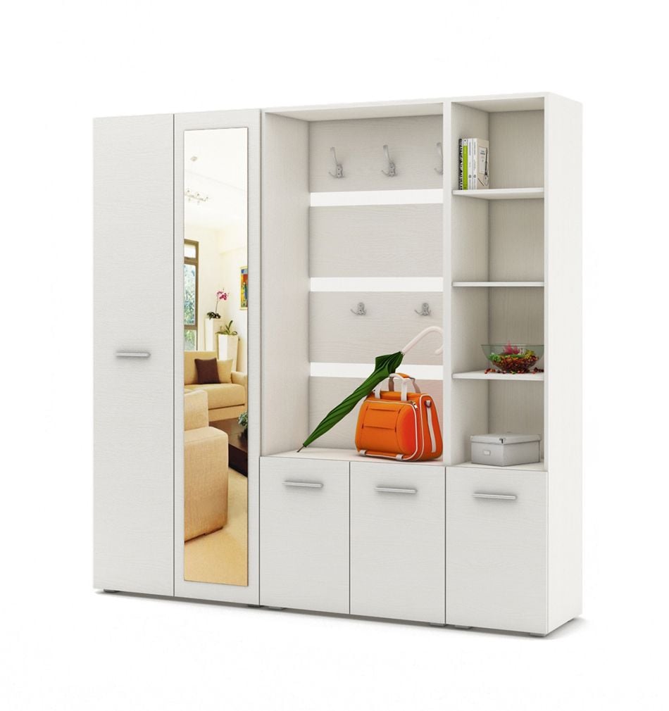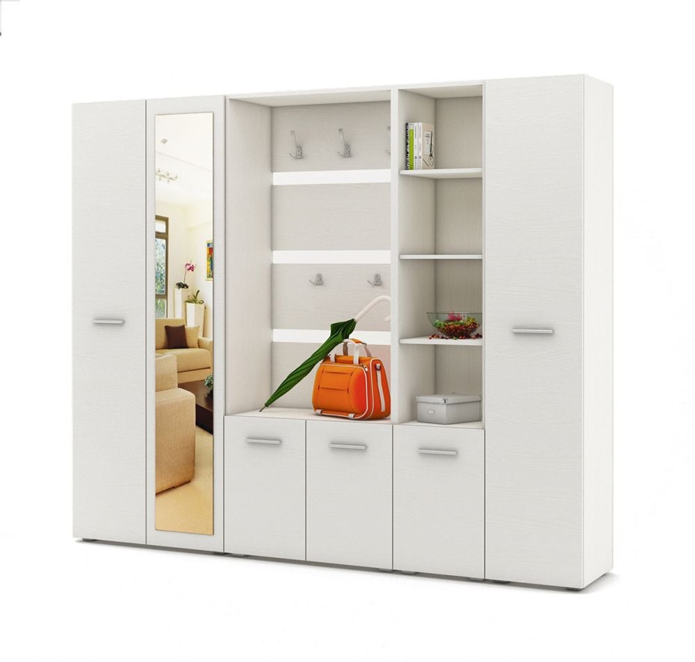 У нас собственное производство, где мы можем изготовить мебель под любую планировку квартиры. Для узких коридоров хорошо подойдут небольшие прихожие стенки, а также угловые со встроенными шкафчиками, обувницей и полочками. Также изготавливаем малогабаритные, модульные прихожие.