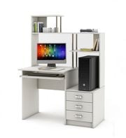 Мы предложим широкий выбор белых компьютерных столов и стульев: от наиболее простых до невероятно сложных с множеством полок и ящичков. Идеально впишется в интерьер угловой стол для компьютера, совмещающий в себе функции письменного стола с надстройкой, в котором будут и выдвижные ящики и полки. Можно подобрать совсем небольшой столик для работы с ноутбуком. В нашем магазине вы найдете именно ту офисную мебель, которая идеально подойдет, как по цвету, так и по всем остальным параметрам.