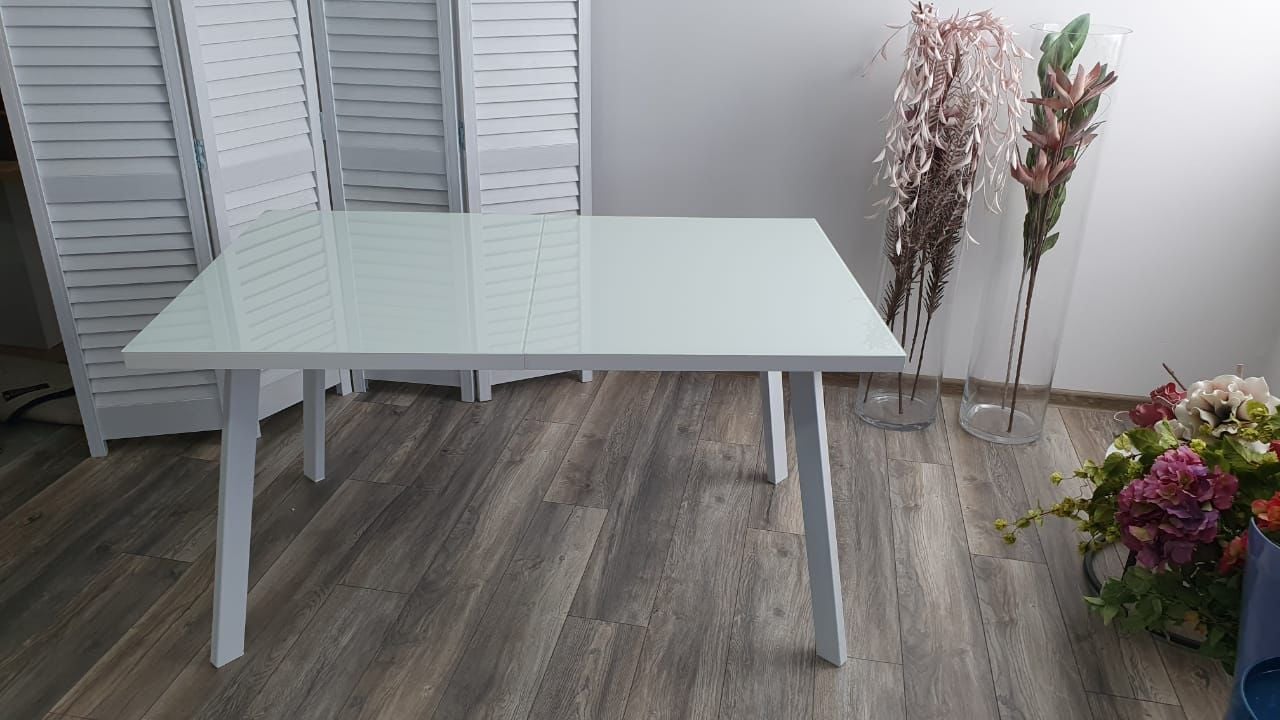 Стол Фин 140 Белый, стекло / Белый каркас