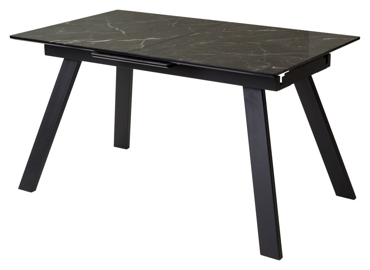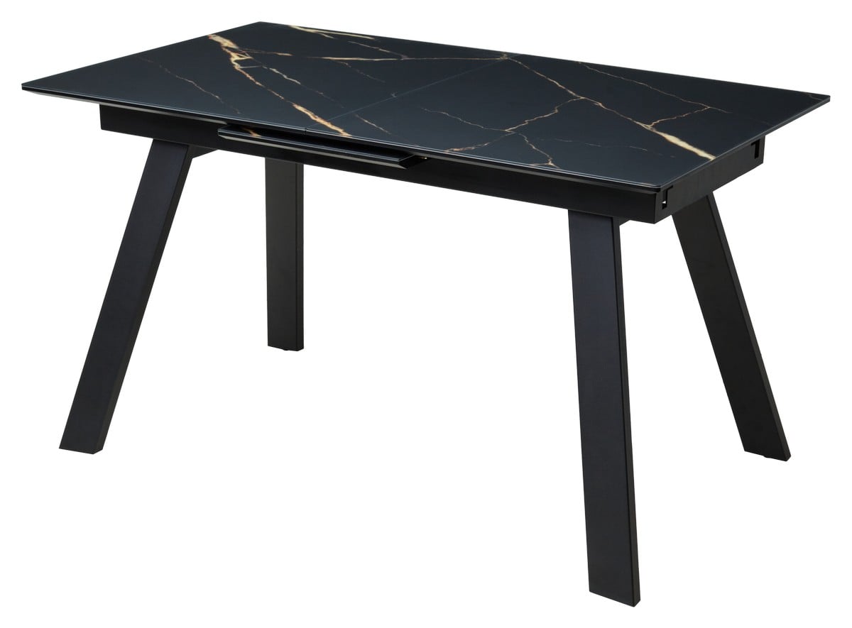 Стол Морис 140 бежевый мрамор, стекло чёрный